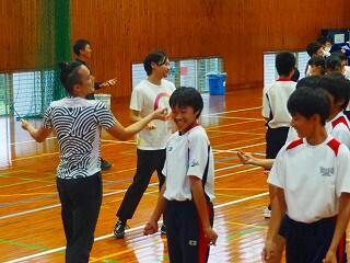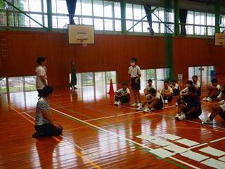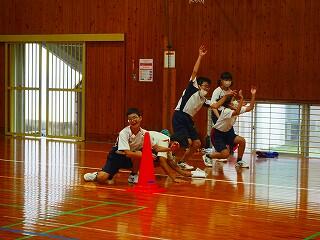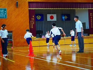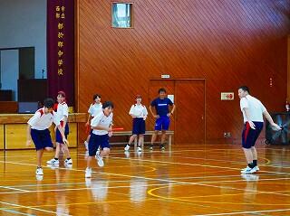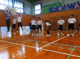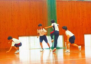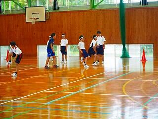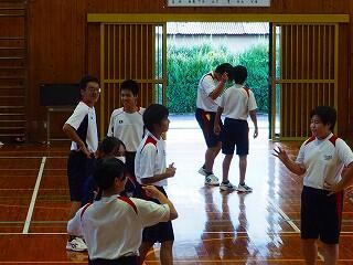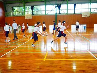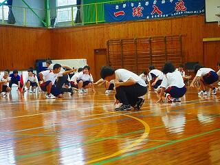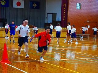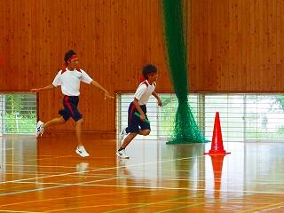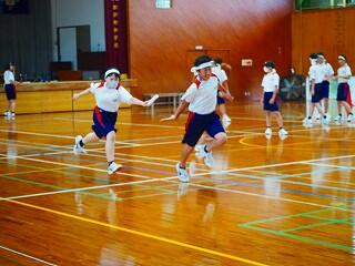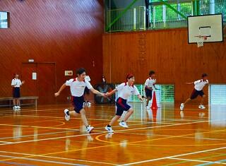 運動場と違って体育館は狭いので、いろいろ工夫をして、少しずつ譲り合って、バトンの受け渡しのタイミングの練習を繰り返していました。