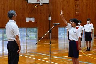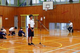 「今よりもっとよりよい学校にするために、誇りに思える都於郡中学校にするために、自覚を持って、日常生活から頑張っていきたいと思います。よろしくお願いします。」