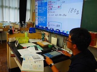 「この単元の大まかな目標が『大気の動きから天気を予想することができる』ということなので、初めに天気予報を考えてもらいました。各自がいろいろなところに着目し、予報を発表しました。いつものように活発に意見を出してくれてよかったです。単元が終わるころには、根拠をもった予報ができるようになるといいなと思います。」