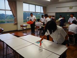 先週、生徒会役員の退任式・新任式があり、それに伴い、今週はいろいろな所でいろいろな担当の新旧引継ぎが行われています。給食コンテナ室担当も新旧交代のため、引継ぎが行われていました。