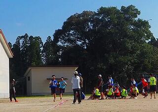中学校のグラウンドは状態が悪いので、今日の6校時は都於郡小学校の運動場をお借りして、リレーの練習をすることになりました。