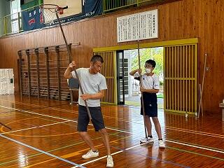 「最初は簡単そうに見えたけど、やってみたら難しかったです。ふりの順番や棒の使い方など難しいと思いました。地域の伝統芸能を体験できてうれしかったです。」
