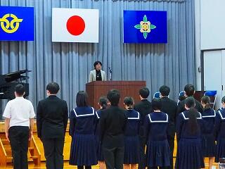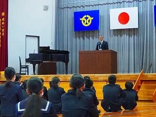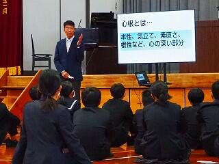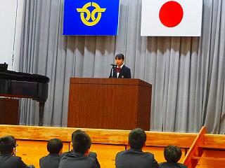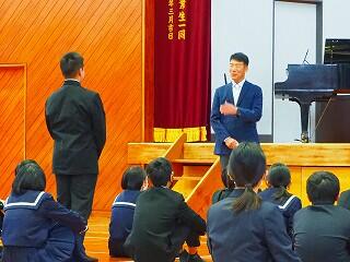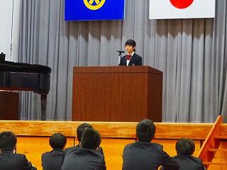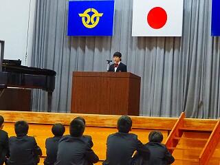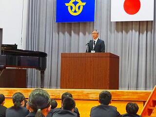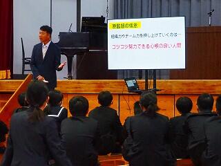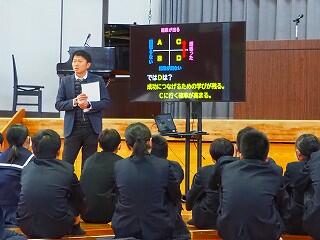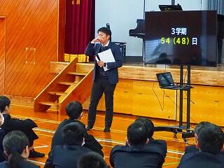 「この3学期は1年間のまとめの時期、来年度につながる大切な3学期です。目標を立てることの大切さでは、『自分の考えを整理すると自分のやるべきことが見えてくる』、『誰のために、何のために取り組むのかを明確にする』、『自分で立てた目標を貼る、人に宣言することで、自分に言い聞かせる』、そしてそれを実現するために小さなステップをたくさん考え、体の健康管理をしっかり行うことがとても重要です。自分で目標を立てて取り組んでいきましょう。」