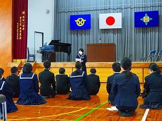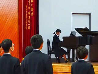 3学期から、校歌の伴奏者は1年生にバトンタッチされました。冬休み中も体育館に来て練習をしていました。これからいろいろな行事での校歌斉唱の伴奏よろしくお願いします。