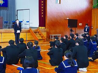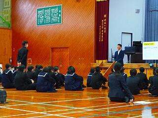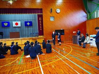 生徒会役員は今回の企画を参考にして、全校生徒に思いが伝わる発表の仕方や内容を、今後も工夫改善していきましょう。」
