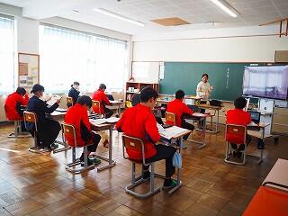 ZOOMの不具合で十分には見えにくい状況も続いたのですが、そのような状況においても、何とか相手の伝えようとしていることを理解し、自分たちも積極的に話し合ったり発表したりと、困難な状況においてもとても気持ちよく、最後まで一人一人がとても協力的な態度でした。「都於郡中のために」という思いで頑張ろうとしている様子がとても伝わってきました。