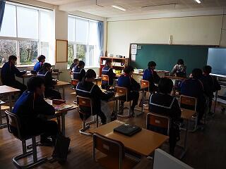 3年生は私立高校入試【1日目】です。学校の3年生教室では、今日登校している生徒で協力体制。本日受験している仲間の分まで協力し合って過ごします。