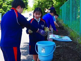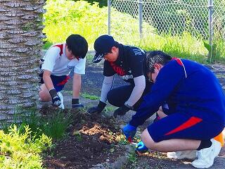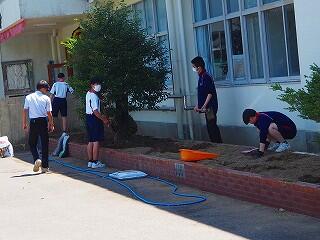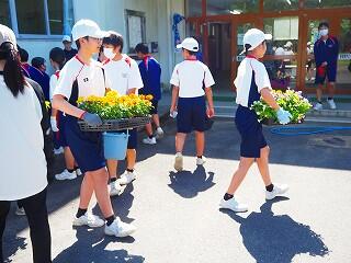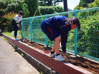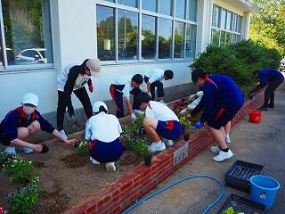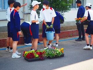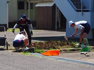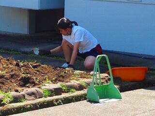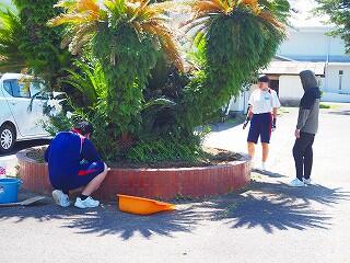 「みんな積極的に活動していました。中には、自分の担当以外の所にも積極的に関わって協力している生徒もいました。また、これまでにも、技術の学習『生物の育成』での土作りのところでも、花壇整備や肥料入れなどの活動など、とても一生懸命取り組んでくれています。明日の美化活動でも、自分たちで考えて花植えをしてくれると思います。」