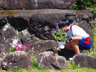 都於郡中では、毎年、高鍋農業高校の生徒の皆さんが育てた苗を購入して、花植えし育てています。