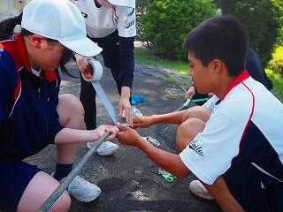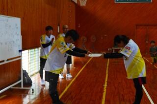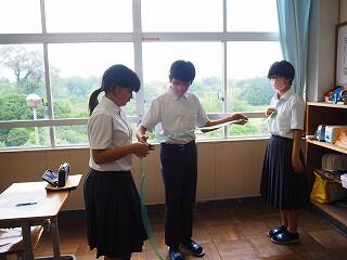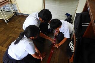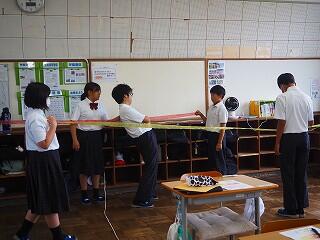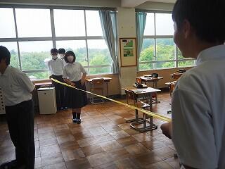次に、「パーソナルスペース」の基準を確認した上で、各班で「パーソナルスペース」のリボンを作り、距離感の確認、練習をしました。