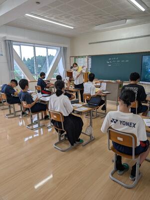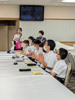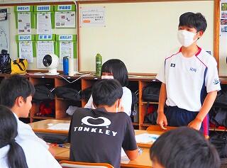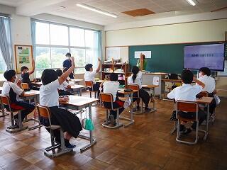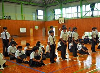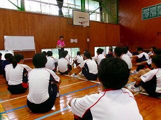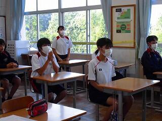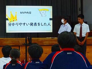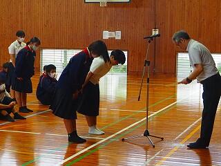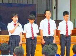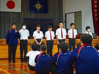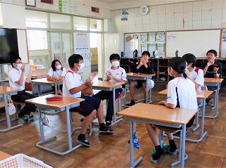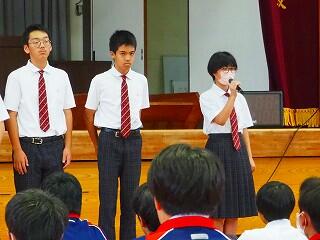 また、教務主任の先生から、「都於郡中、最後の夏の大会に多くの皆さんが応援に行って、一生懸命頑張っている選手の皆さんに、一生懸命応援をしてくれました。本当にありがとうございました。皆さんにも拍手をキラキラ」と、話があり、みんなで拍手をし称え合いました。
