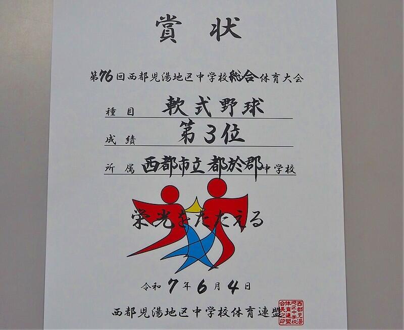 第76回西都児湯地区中学校総合体育大会【軟式野球】第3位キラキラ