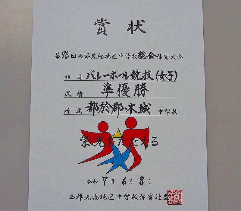 第76回西都児湯地区中学校総合体育大会【バレーボール競技】準優勝キラキラ