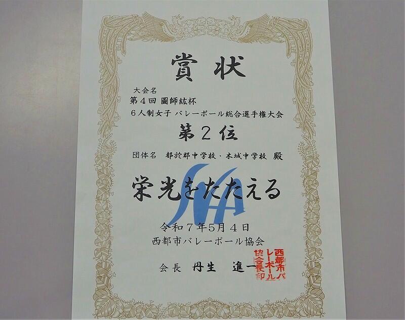 第4回 圖師紘杯 6人制女子バレーボール総合選手権大会 第2位キラキラ