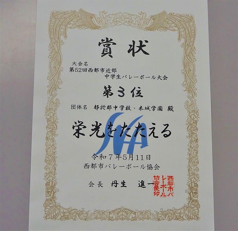 第52回西都市近郊中学生バレーボール大会 第3位キラキラ