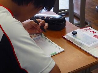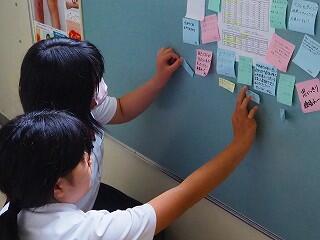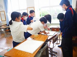 3年生は先だって学級目標のデザイン選考をしていましたが、決定したようです。今日の学活では、いよいよ作成に入りました!