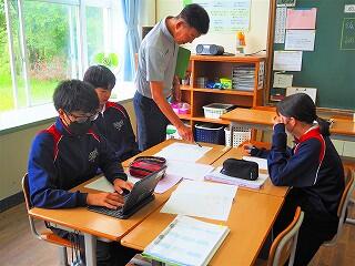 補充学習の時間は、生徒が自分で学習したい教科を選択します。学習する手段も自分で考えて準備します。教科書や資料集などを使って先生の説明や解説を聞きたい人や、プリントでコツコツ集中したい人、タブレットで自分のペースで確認したい人など様々です。