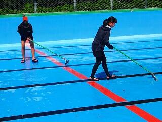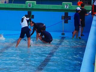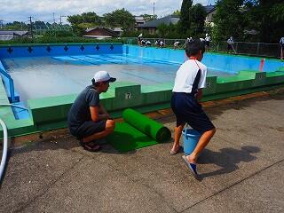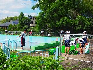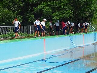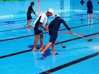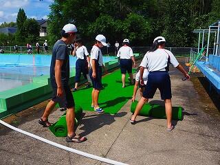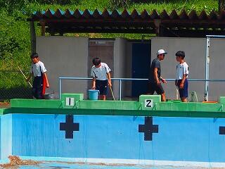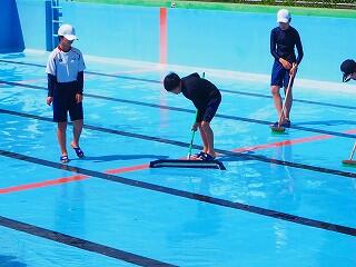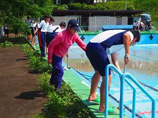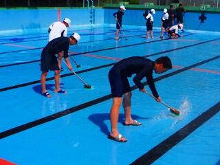 しっかり熱中症対策、安全対策をとって、プール開きが行われました。