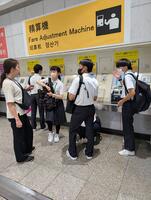 電車を確認して、切符を買っている班に遭遇しました。