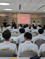 生徒と年齢が近い講師の方々の、自分の人生を自分で切り拓いてこられている生き方のプレゼン等から、いろいろと感じることがあったようです。全体の話の終了後、どの学校も個別にたくさんの生徒が質問に行っていました。