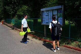 バディを組んで、安全対策もしっかり確認!見学の人たちは、前半は木陰で記録のサポート等をし、後半は教室に戻って自習をします。