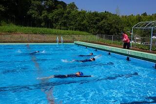 「1、2年生の水泳学習も始まりました。今日は初めて挑戦する『背泳ぎ』で、4つのグループに分かれて教え合いをしました。今後の成長を見ていくためにも、今日の泳ぎのタイムもとりました。どれくらい上達していくのか、とても楽しみです!」