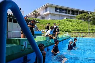 2校時、1、2年生の水泳の学習です。一生懸命、教え合う声が響いていました。