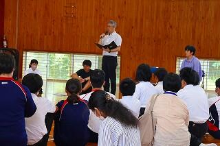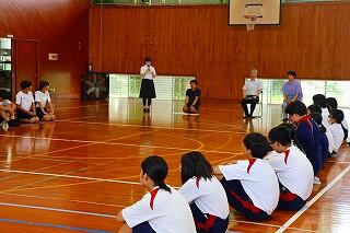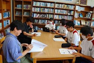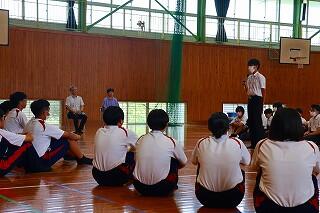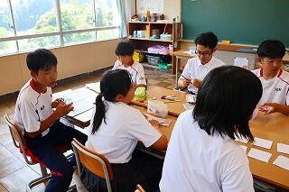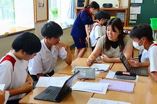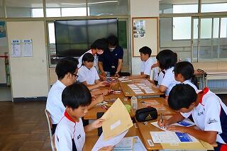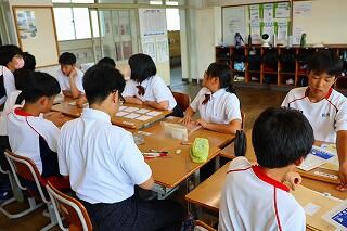 「とても真剣に学習してくれました。たくさん発表もしてくれて、活動も積極的にしてくれました。そして何より、一人一人がよく考えてくれました。グループワークでも、協力的に動いてくれたのでとても嬉しかったです。学校の雰囲気がとても良いな…と感じました。いろいろな意見を出し合いながら、様々な活動に取り組んでいってください。」