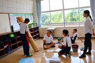 2年生が率先して1年生に片付け方の要領を教えてくれていました。