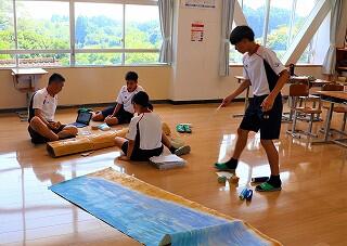 明日は、西都市内の中学3年生が一堂に会しての探究活動発表会です。都於郡中からは、校内での発表会(予選会)で選ばれた1チームが代表して、明日の発表の場を迎えます。
