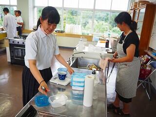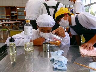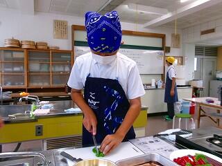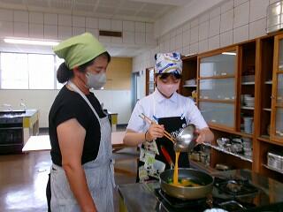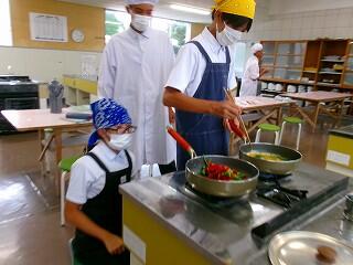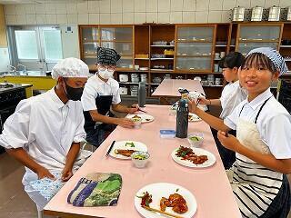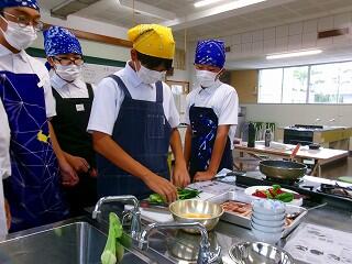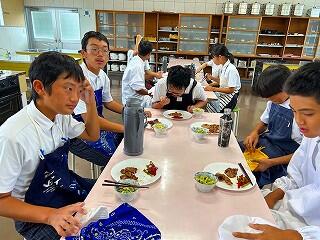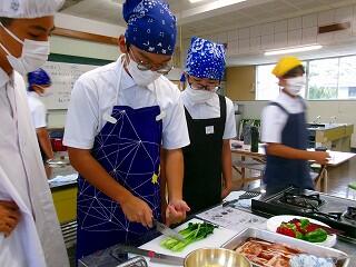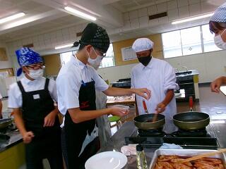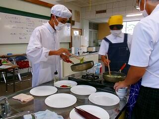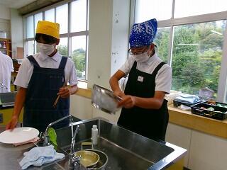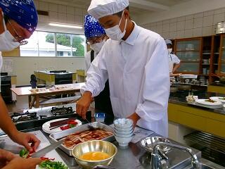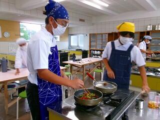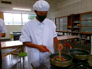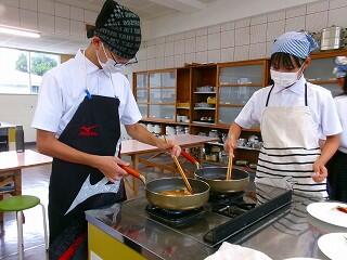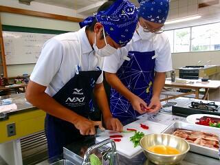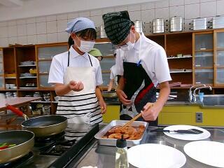 「作る前は簡単そうと思っていたけど、実際作ってみたら班の4人でもいろいろすることがあってバタバタしてしまいしたが、時間内にできました。味は肉も柔らかく出来上がっておいしかったです。」