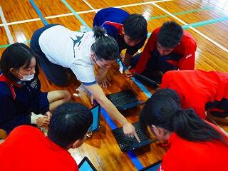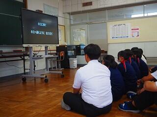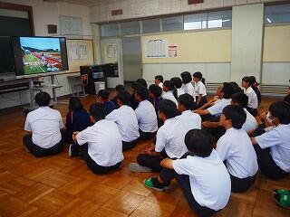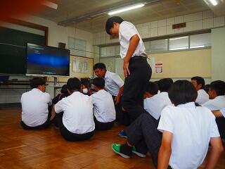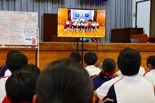 都於郡中として出場する最後の県大会、地区駅伝大会の激励動画をみんなで視て、ALL都於郡で応援する気持ちを一つにします。