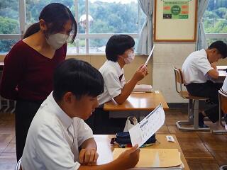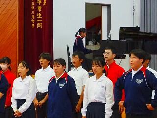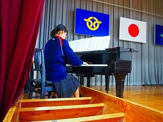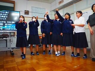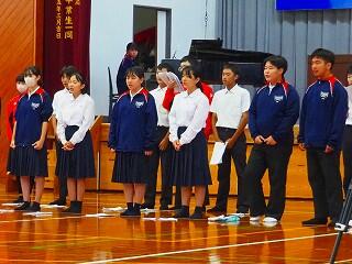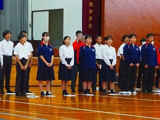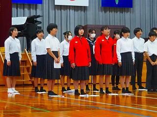 「今日は、出入りも含めてのリハーサルを行いました。本番が近づいてきています。各パートの歌声が一つになってきており、これまでの練習を一生懸命取り組んできた姿勢が伺えます。本番まで、まだもう少し時間があるので、最後の都於郡中としての学習発表会、音楽会に向けて、気持ちを歌声で表現できるように練習を重ねていきましょう。」