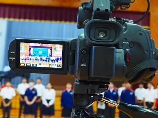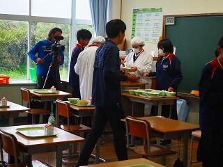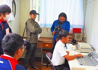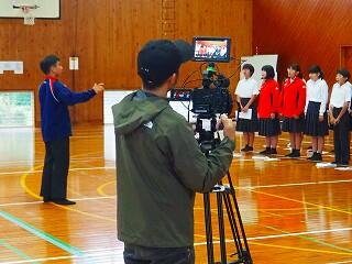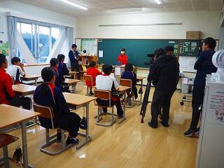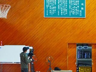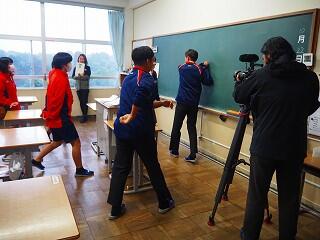 今日は、映画監督の古木洋平監督とカメラマンの方が朝早くから来校され、閉校ムービー作成のために都於郡中の学校生活の様子を撮影されました。