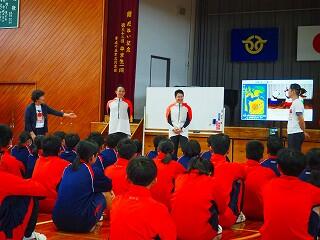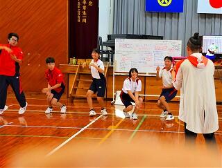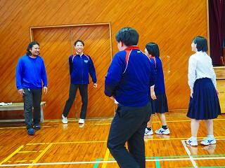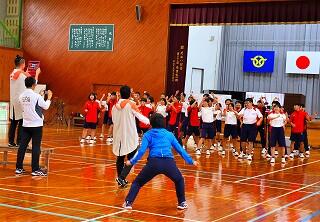 ダンス学習で、国スポ事務局の方、ダンスカンパニー【んまつーぽす】の方々が来校されました。