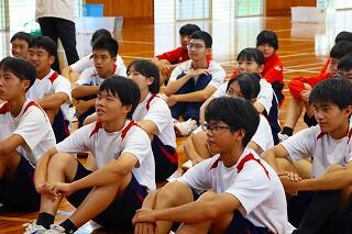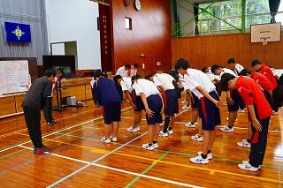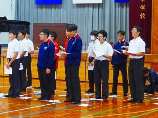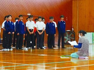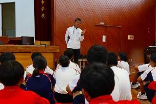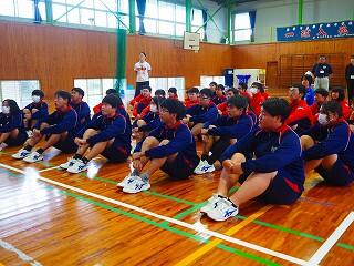 「動画を見てみると、改めてそれぞれの難しい状況の中において、いろいろな人の支えや協力をもらいながら、練習を頑張ってきていることがわかります。家族のサポートをもらって自主練習をしたり、怪我している時期に仲間の協力や声援があったり。駅伝の練習では、『自分は駅伝には出ないけど、頑張っている人たちと一緒に走って練習を共にしたいです!』と、一緒に走って練習をしている人もいました。一生懸命頑張っている姿があるからこそ、周りの人も一生懸命支え、協力する。つながっていく。都於郡中の素晴らしい力です。最後まで、全力で頑張り抜きましょう!」