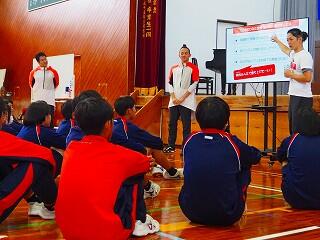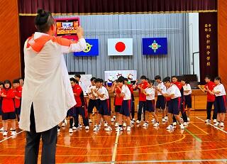 「年間、40校ぐらいの中学校を回ります。活動は来年で20周年になります。ダンスでつながっていっている子どもたちは10万人を超えます。都於郡中の皆さんは本当に素晴らしい