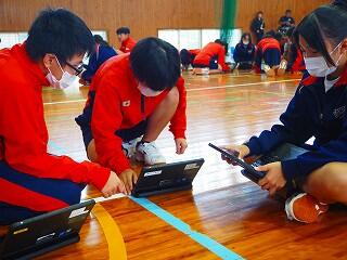 自分たちが考えた振りつけを、隣のチームに説明して伝えていきます。