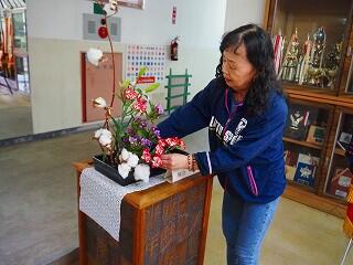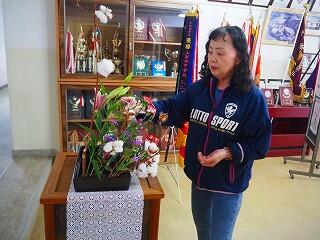 毎月、その季節に応じたイメージで生け花作品を展示してくださっているのは、地域で華道教室をされている先生です。