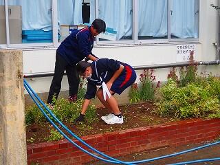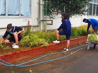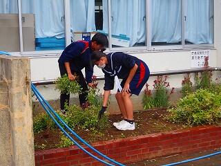 花壇の枯れた花や雑草などを整備してくれている人たちがいました。