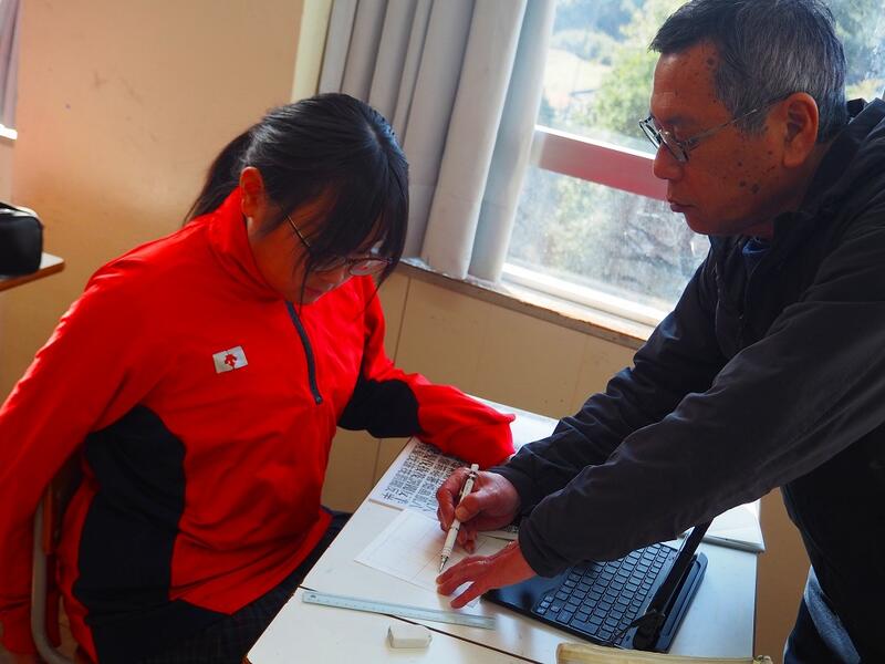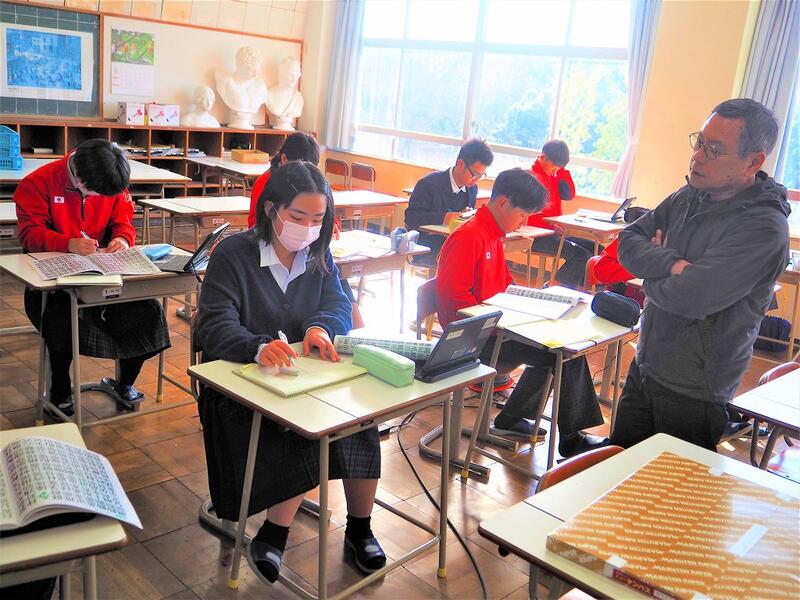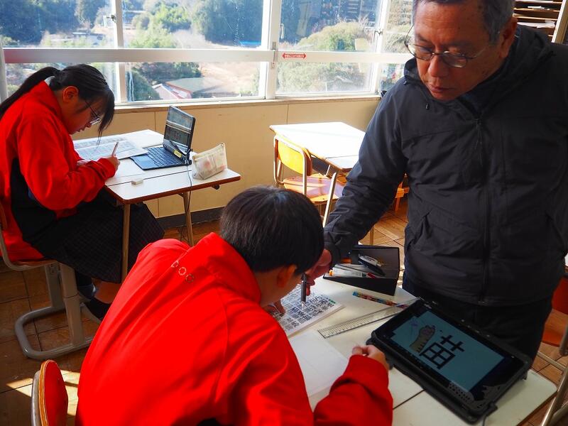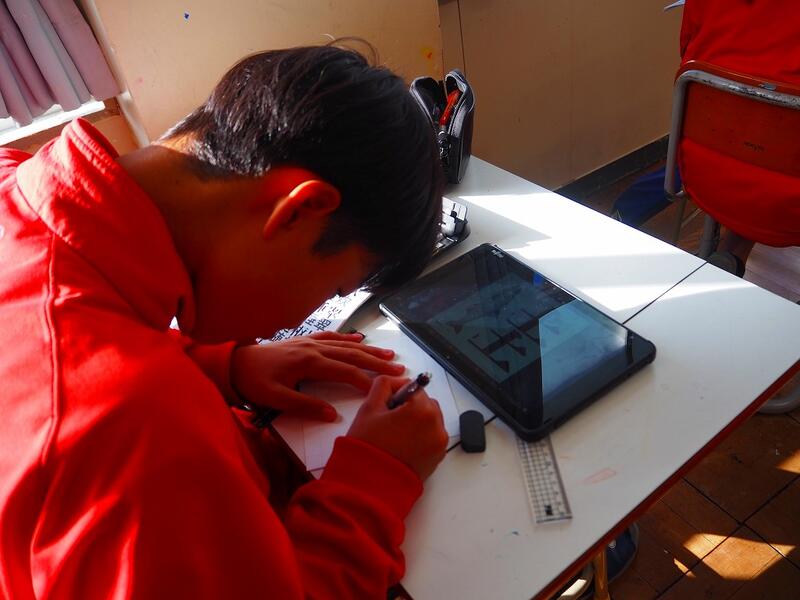 それぞれ自分で描きたい文字のデザインを考えて、取り組んでいます。
