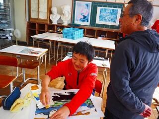 「篆刻」が仕上がった人は、いよいよ卒業に向けての最後の作品、色紙の作成に入っていました。