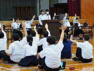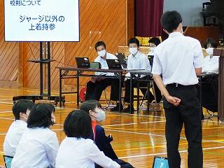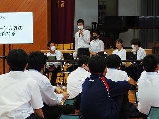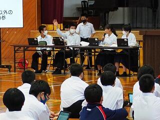今日出された意見を、さらにまた中央委員会でまとめて各学年に伝えていくので、また、全校生徒みんなで取り組んでいきましょう!」