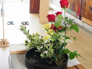 地域のお華の先生が、毎月学校に来て生けてくださっています。