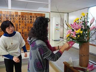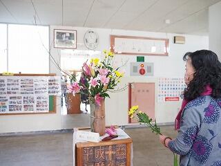 毎月、地域の華道教室の先生が、その月のイメージで玄関を彩ってくださいます。