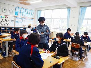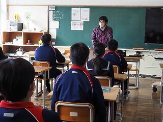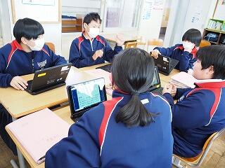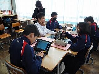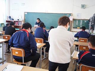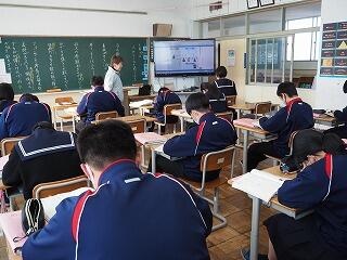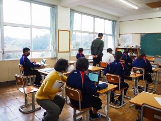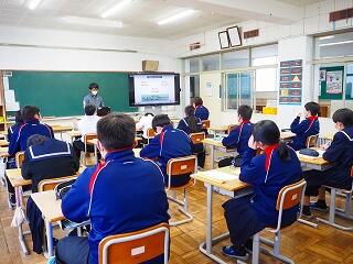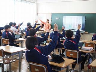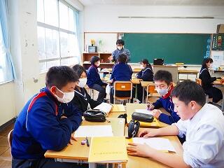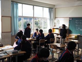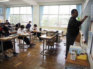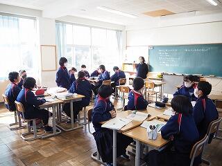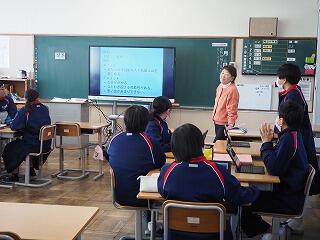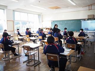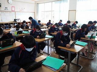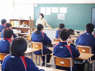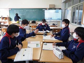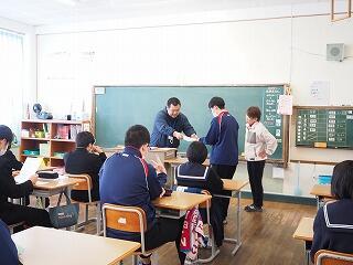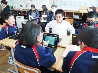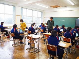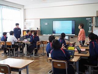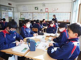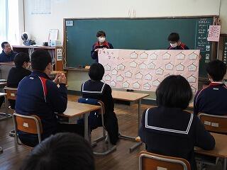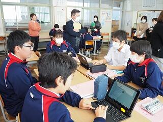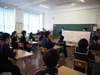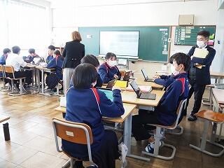 「今日の授業は、他の学校の先生方も参観されたので普段より緊張していたと思いますが、積極的に学習に取り組んでいました。参観された他の学校の先生方からも、『グループワークの時に、進行や記録の分担する時もとても積極的に取り組んでいて素晴らしいですね。』と、学習取組の様子をほめてくださっていました。日ごろのいろいろな学習での取組の積み重ねの賜物だと思います。これからも積極的に取り組んでいきましょう。」