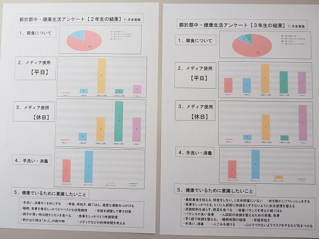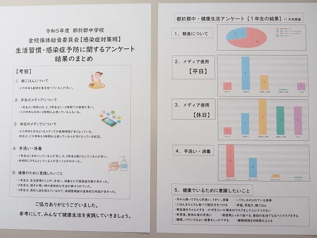 全校保体給食委員会が、感染症対策の一つとして「生活習慣」についてのアンケートを取りました。
