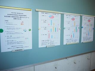 保健室前にもカラー版が掲示してあります。アンケート作成担当、まとめ作業担当、それぞれに分業しての作業に取り組んでいました。いろんな行事や取組などと並行していたので、自分たちで作業できる日を確認しながら、コツコツと頑張っていました。それぞれに責任もって取り組んでいました