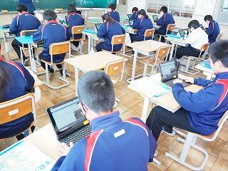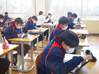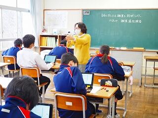 1月16日(火)に、1年生の国語科で ICT活用した研究授業がありました。