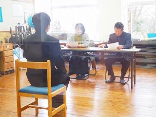 今日の面接の練習には、学校運営協議会委員の6名の皆様が面接官として来てくださいました。